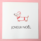 Plonge dans la magie de Noël avec cette carte à broder au motif festif et trop mignon : un adorable petit teckel en costume de Noël.